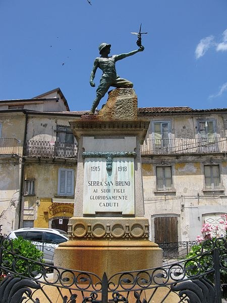 L’opera celebrativa è stata eretta nel 1925 ed ha visto accanto alla commissione al Maestro Mistruzzi, la collaborazione delle maestranze locali specializzate nella lavorazione del granito. Nel secondo dopoguerra sul monumento sono state inserite lapidi per commemorare la memoria degli ulteriori figli che Serra ha sacrificato alla Patria. Nel 1953 l’opera scultorea è stata circondata da una balausta artistica, progettata dal Maestro Pisani, recante i simboli bellici, realizzata dagli allievi di un corso di formazione professionale sotto la guida dei maestri locali della lavorazione del ferro.