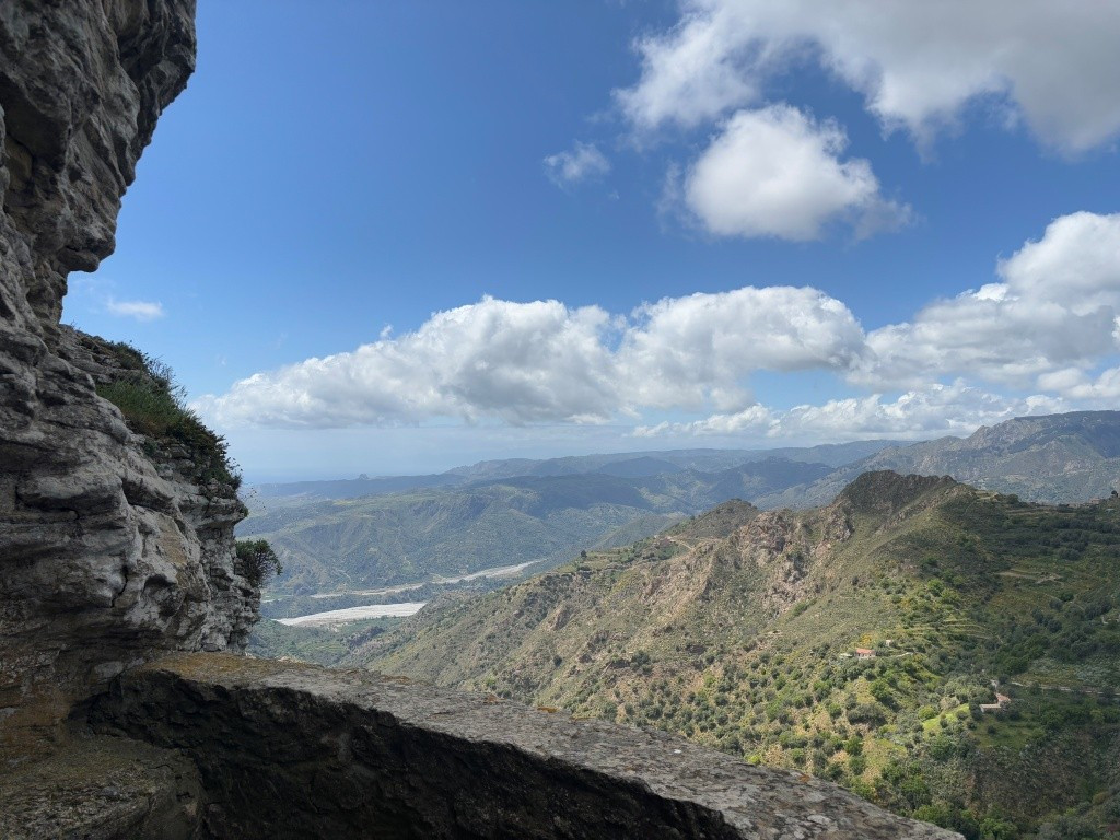 La posizione eccezionalmente panoramica in virtù dell’altitudine offre visuali aperte verso la vallata, dall’entroterra di Palizzi agli immediati dintorni di Gallicianò, Roccaforte e San Lorenzo; da qui lo sguardo segue la fiumara Amendolea ripida e stretta a monte, ampia e più dolce a valle, fino al mare, comprendendo un ampio arco costiero, con l’orizzonte dominato dall’Etna.